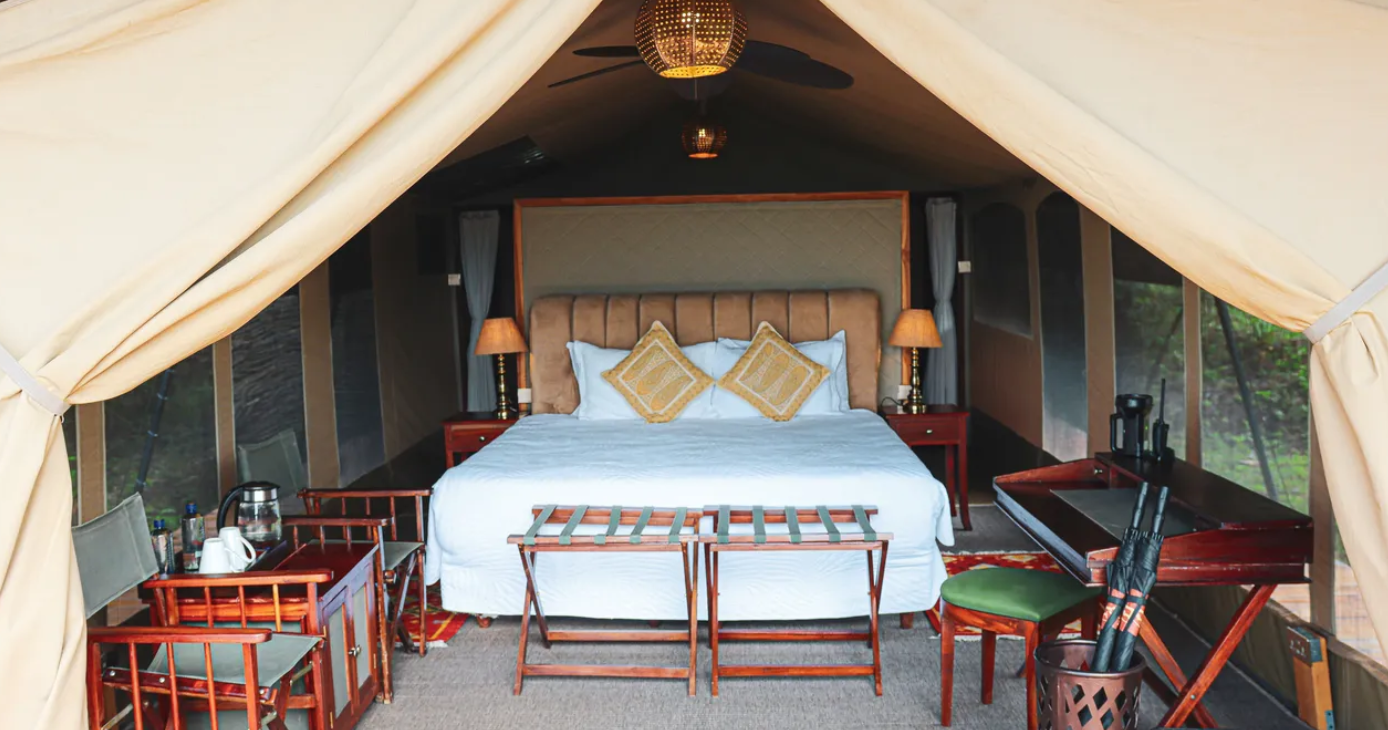 Den autentiske innredningen gjenspeiler safarieventyrene fra 1920-tallet og suppleres med moderne komfort, inkludert et evighetsbasseng med utsikt over elven. Med bare 16 telt, inkludert ett større familietelt, tilbyr campen en eksklusiv og privat opplevelse og ønsker gjester i alle aldre velkommen.