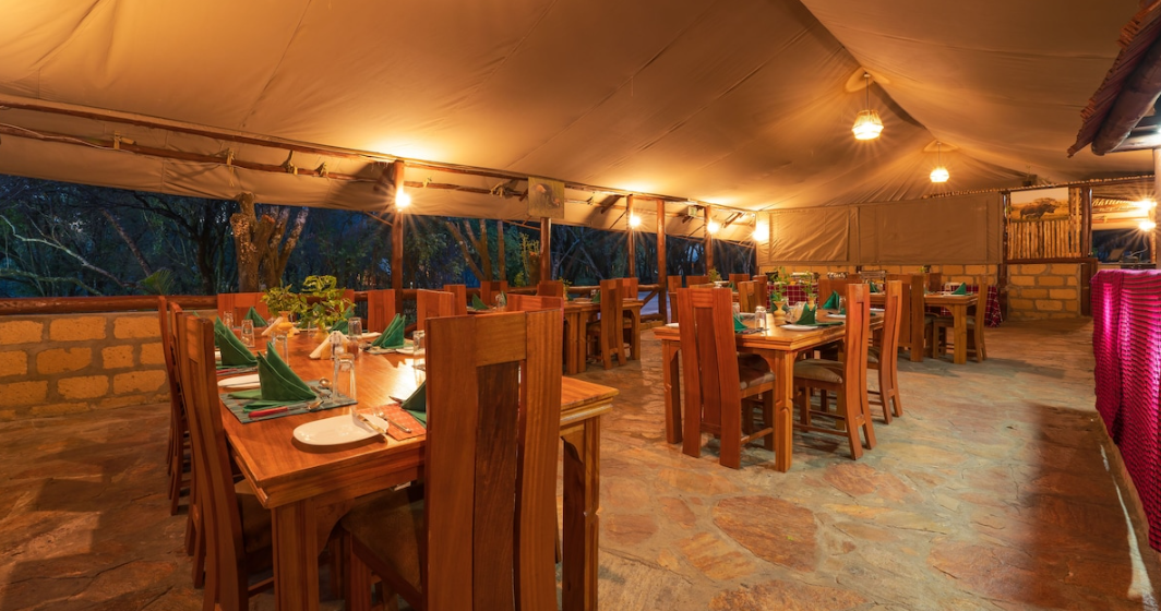 Det er kun 10 romslige og komfortabelt innredede telt som bidrar til den intime og luksuriøse følelsen. Hvert telt er smakfullt dekorert med afrikansk tema. I campens restauranttelt serveres både internasjonale retter og lokale delikatesser, tilberedt av deres kokk.