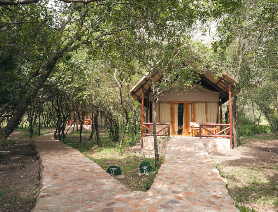 De luksuriøse og vakkert innredede teltene har egne bad og er hevet på tredekk med utsikt over elven Mara. Entim-opplevelsen handler om å være en del av landskapet og få dype møter med ville dyr og Masaifolket i deres eget land.
