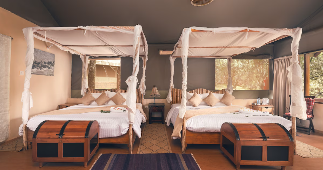 Lodgen har 74 gjesterom, inkludert suiter, alle inspirert av masai-kulturen og det naturskjønne omgivelsene. Hvert rom er unikt plassert for å maksimere utsikten over elven og savannen. Lodgen er perfekt for deg som søker en uforglemmelig safariopplevelse med luksuriøse fasiliteter, betagende utsikt og nær tilgang til ville dyr og natur.