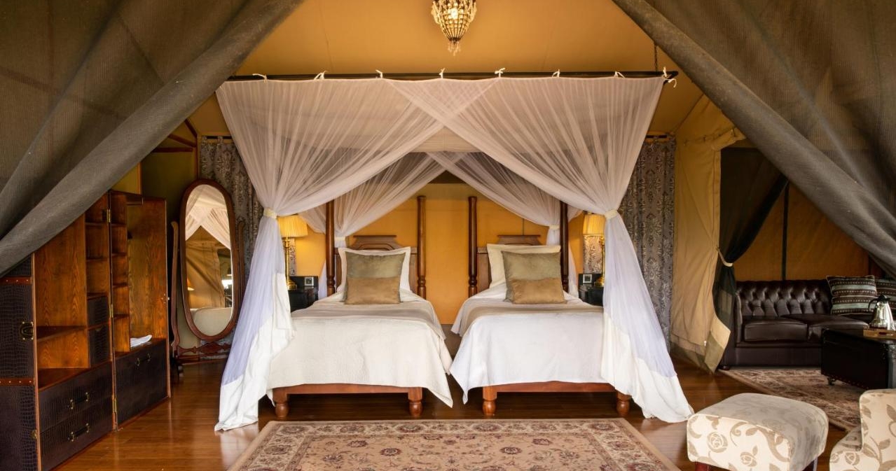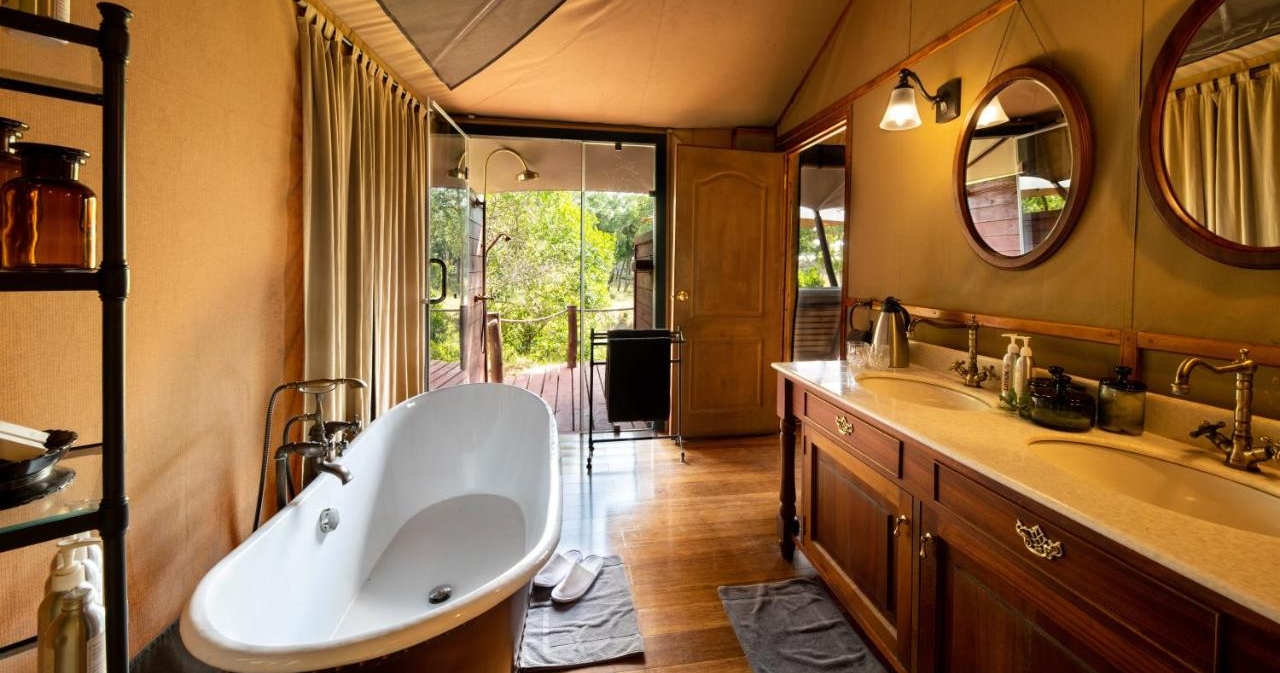 Den autentiske innredningen gjenspeiler safarieventyrene fra 1920-tallet og suppleres med moderne komfort, inkludert et evighetsbasseng med utsikt over elven. Med bare 16 telt, inkludert ett større familietelt, tilbyr campen en eksklusiv og privat opplevelse og ønsker gjester i alle aldre velkommen.