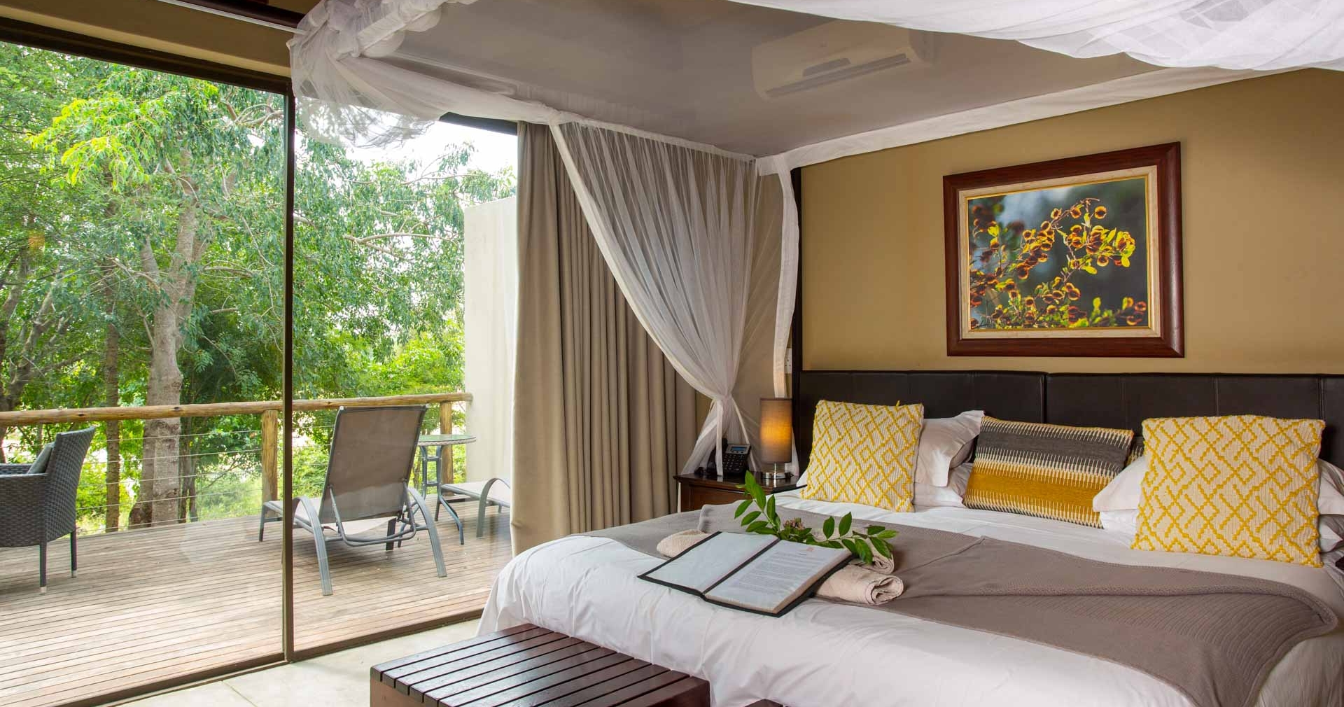 Hver suite har et moderne afrikansk design, fullt utstyrt bad, privat terrasse med oppvarmet spabad og utsikt over elveleiet. Mellom safariene er det mulighet for å slappe av ved bassenget eller gå rundt i omgivelsene. Dette er det perfekte overnattingsstedet for deg som søker en eksklusiv og adskilt safariopplevelse.