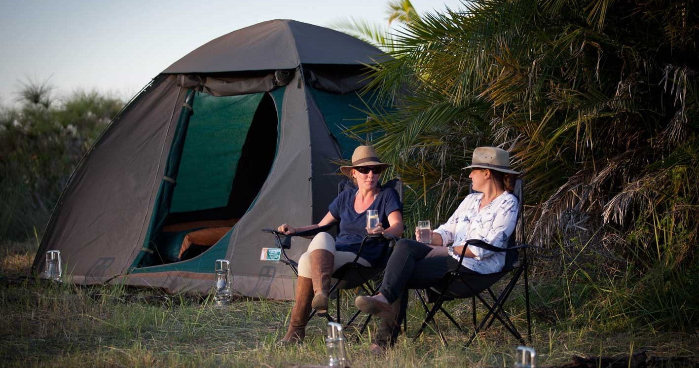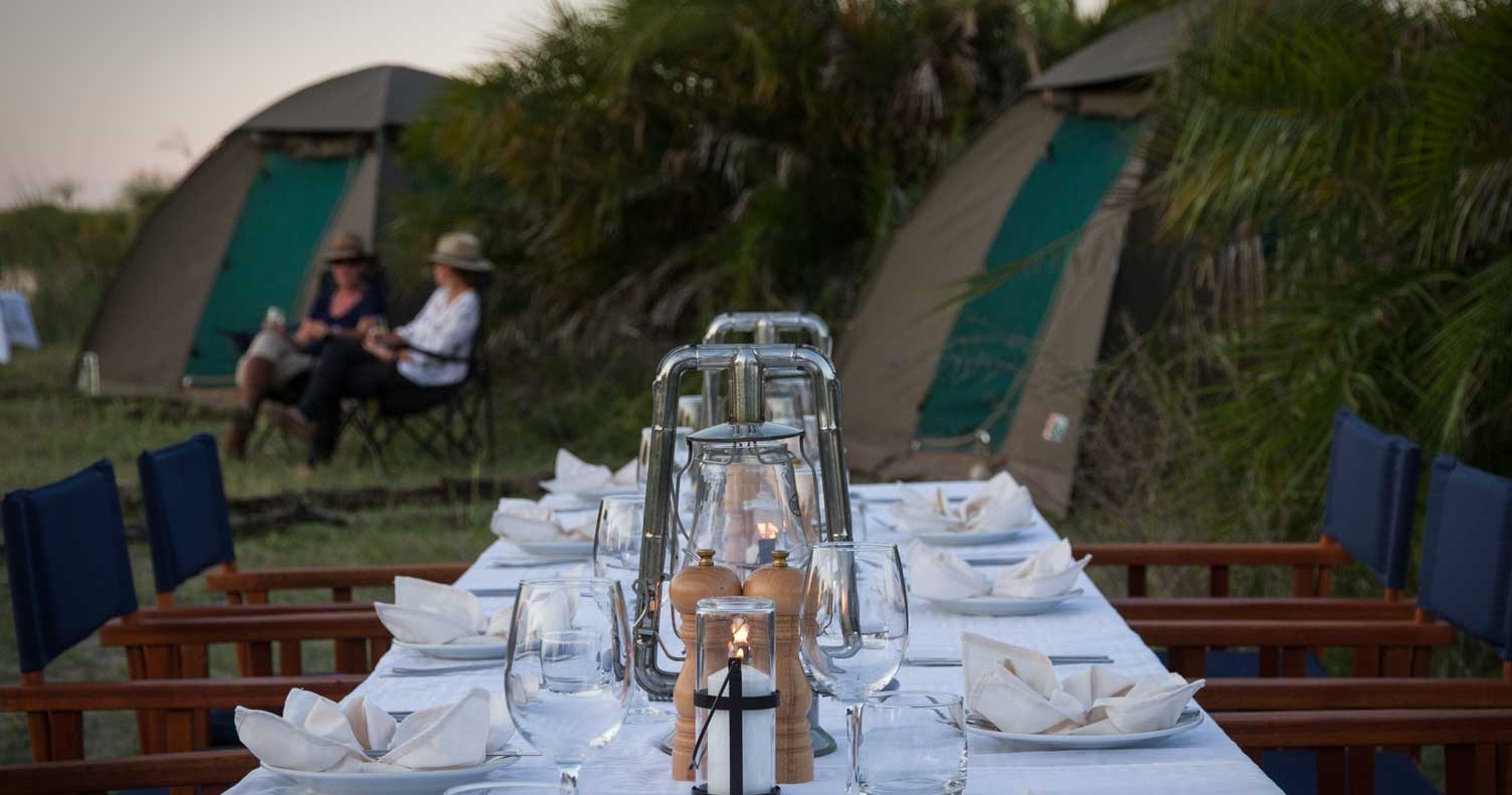 Fly-camps settes opp spesielt for hver gruppe og tas ned etterpå for å sikre at det ikke etterlates fotavtrykk på miljøet. En privat kokk følger med hver campinggruppe for å tilberede ferske måltider. Middagen serveres rundt et bål under den vidstrakte afrikanske stjernehimmelen.