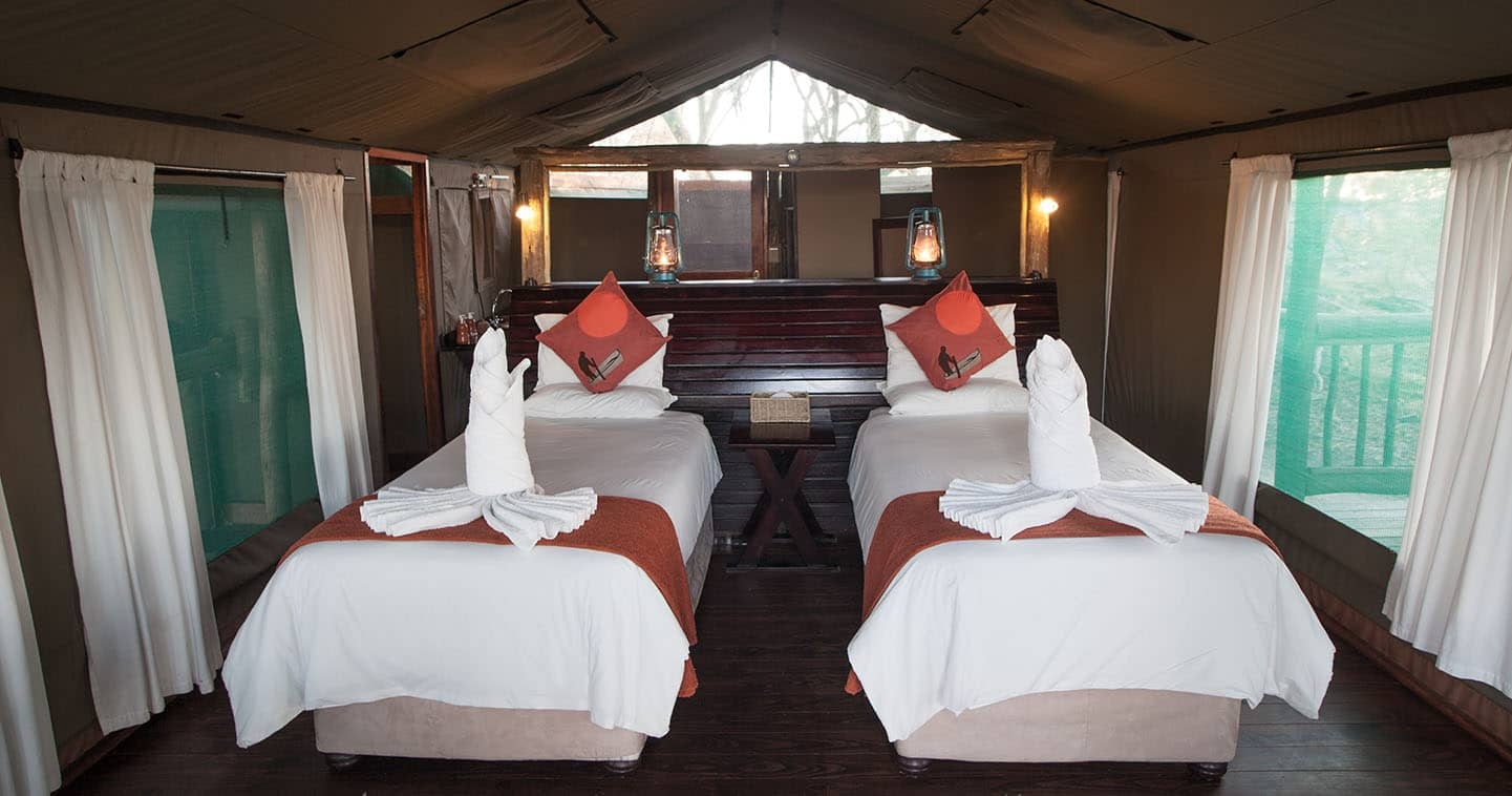Teltet er romslig og praktisk innredet med feltsenger, "bucket shower" og utedo - alt du trenger for å være komfortabel i bushen. Komforten er enklere enn på en permanent lodge, men naturopplevelsen er desto større, og følelsen av frihet og nærhet til dyrelivet er rett og slett ubeskrivelig!