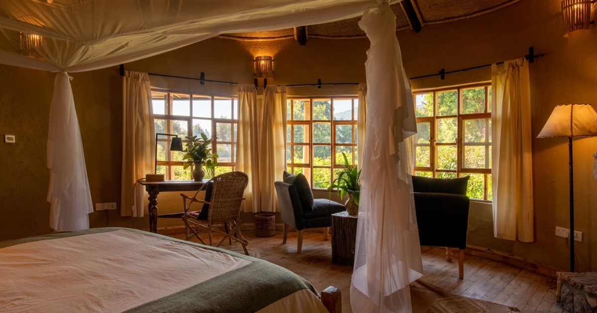 Mount Gahinga Lodge, vakkert plassert i regnskogen like utenfor Mgahinga Gorilla National Park, er en eksklusiv og intim innkvartering som tilbyr gorillasporing i Virunga-fjellene. Her finner du åtte håndbygde hytter, hver med luksuriøst dusjrom, peis og egen veranda, som gjenspeiler estetikken til Bufimbira-folket.