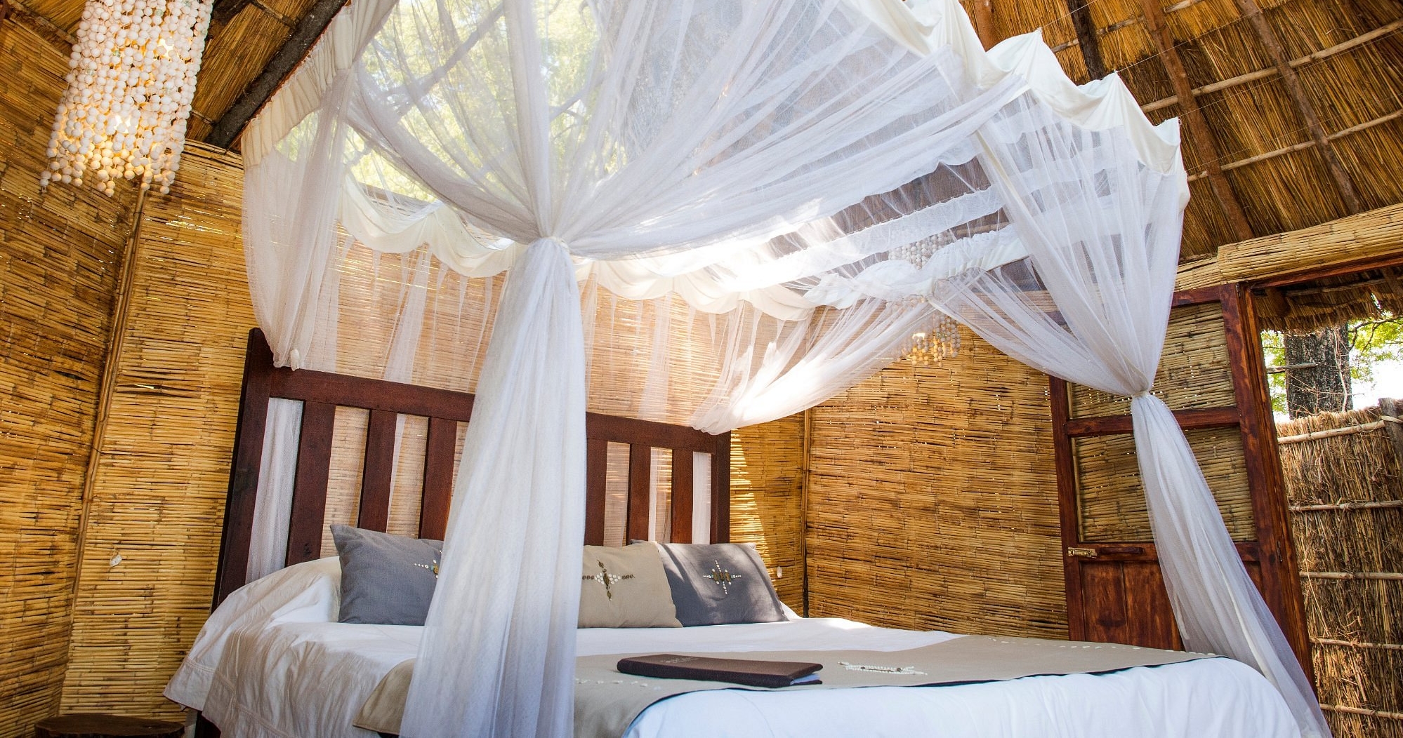 Overnattingen består av fire luksuriøse telt hytter, hevet på tredekk, som gir en fantastisk utsikt over lagunen og dens ville dyr. Hvert telt har private verandaer, hvor du kan nyte landskapet i fullstendig privatliv.