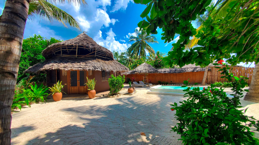 Her bor dere i en koselig bungalow i en tropisk hage med svømmebasseng. Bungalowen har minikjøkken med kjøleskap og koketopp, aircondition og veranda, og dere benytter dere av nabohotellet Mwezis restaurant og strandområde. Personalet kan være behjelpelige med innkjøp av dagligvarer. La Luna er et supert budsjettalternativ, og her ligger alt til rette for å nyte herlige dager på Jambiani!