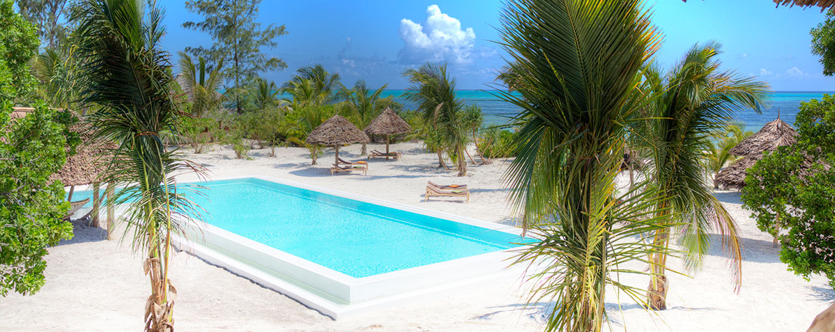 Rommene er moderne og elegante. Alle har en utendørs veranda, som ligger rett på den hvite stranden, hvor frokost, lunsj og middag kan serveres. Alle rom med flott utsikt over Det indiske hav og evighetsbassenget. Hvert rom er utstyrt med gratis wi-fi, safe, king-size-senger med store myggnett og takvifte. Fiskeværet Jambiani er en av de mest kjente landsbyene på Zanzibar og er på mange måter uberørt til tross for turisme. Her går dagliglivet side om side med turisme på en naturlig måte, noe som også skaper muligheter for ekte opplevelser.