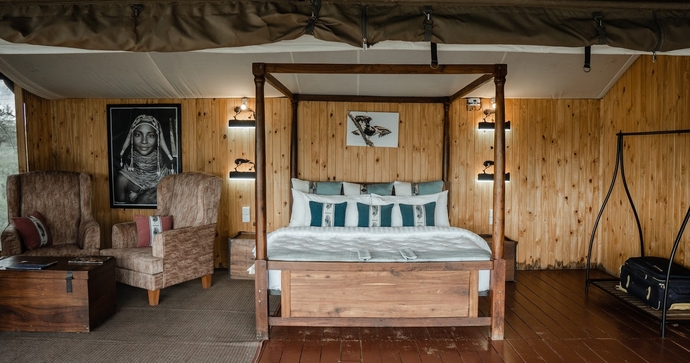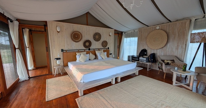Campen består av romslige og moderne telt, utstyrt med et privat bad med varm dusj og toalett, komfortable senger, mykt sengetøy og tradisjonelle afrikanske tekstiler. Hvis du søker et autentisk og hjemmekoselig overnattingssted er dette perfekt for deg.