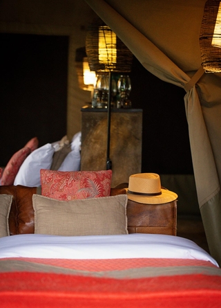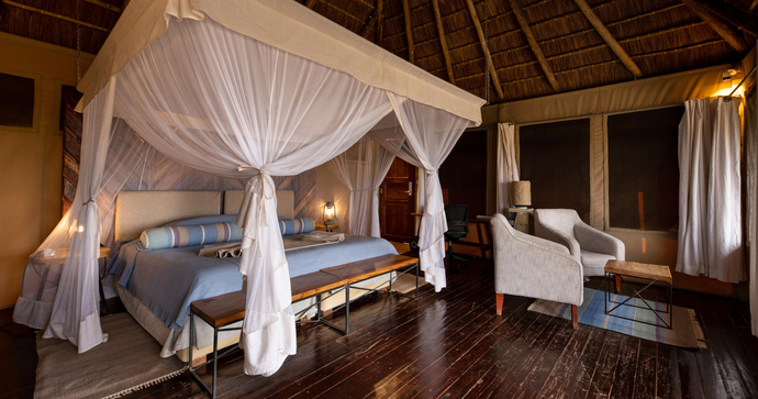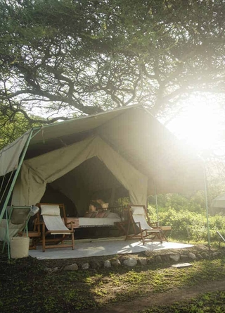 Campen består av et fåtall romslige, klassiske safaritelt med ordentlige senger, eget bad og utendørsdusj. Her bor du midt ute i villmarken, men med overraskende komfort. Du våkner til naturens egne lyder og sovner under en glitrende stjernehimmel – en autentisk og uforglemmelig safariopplevelse, akkurat slik den skal være.