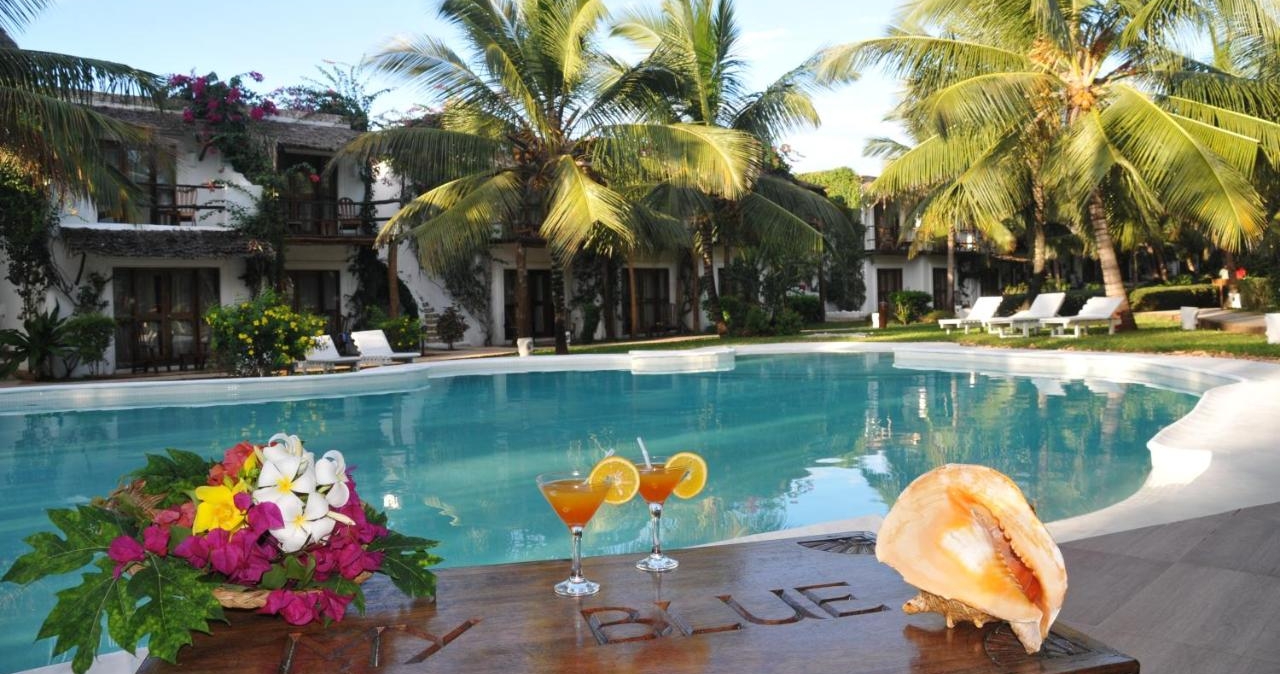 My Blue Hotel et et budsjettvennlig overnattingssted nord på Zanzibar, ved Nungwi. Området er kjent for vakre strender og flotte solnedganger.