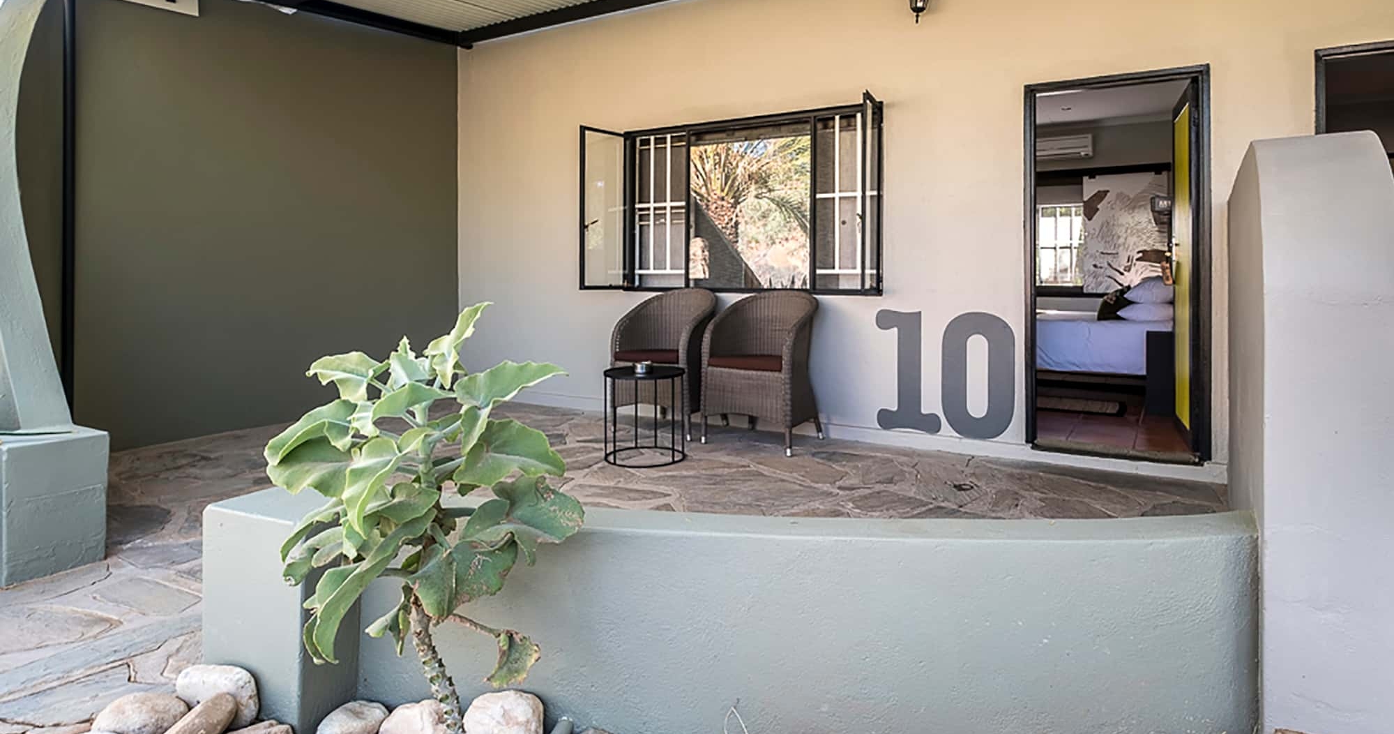 Bostedet består av 66 rom som inkluderer tomannsrom, dobbeltrom, trippelrom og familierom. Alla rom er utrustet med aircondition og bad. Her har du virkelig muligheten til å beundre Namibias spektakulære villmark.