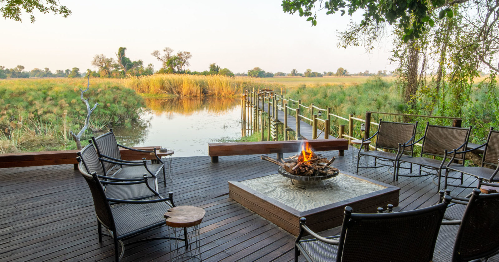 Utforsk Okavango Delta eller len deg tilbake og nyt utsikten og roen, enten fra bassenget eller fra din private balkong. Kveldene avsluttes med middag under stjernehimmelen og åpent bål. Et opphold du sent vil glemme.