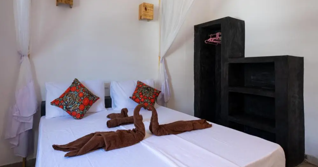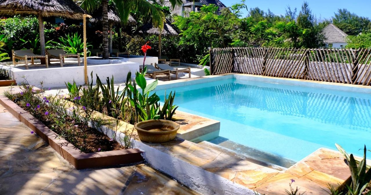 Her bor dere i en koselig bungalow i en tropisk hage med svømmebasseng. Bungalowen har minikjøkken med kjøleskap og koketopp, aircondition og veranda, og dere benytter dere av nabohotellet Mwezis restaurant og strandområde. Personalet kan være behjelpelige med innkjøp av dagligvarer. La Luna er et supert budsjettalternativ, og her ligger alt til rette for å nyte herlige dager på Jambiani!