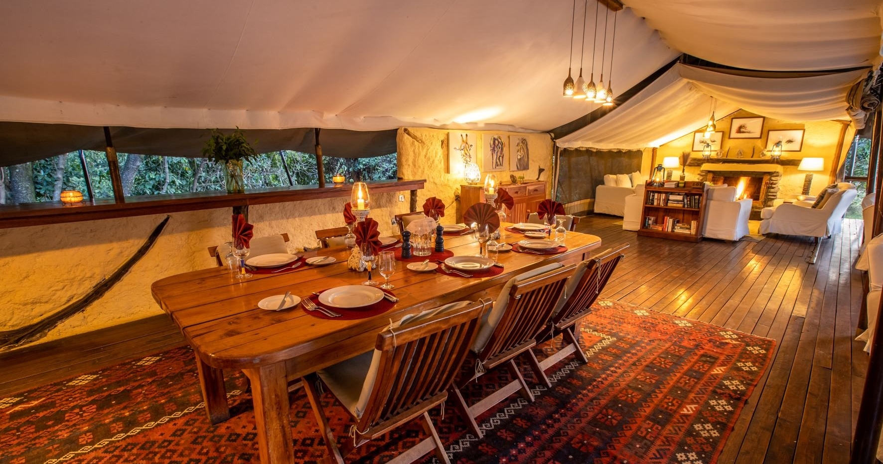 Det er kun 10 romslige og komfortabelt innredede telt som bidrar til den intime og luksuriøse følelsen. Hvert telt er smakfullt dekorert med afrikansk tema. I campens restauranttelt serveres både internasjonale retter og lokale delikatesser, tilberedt av deres kokk.