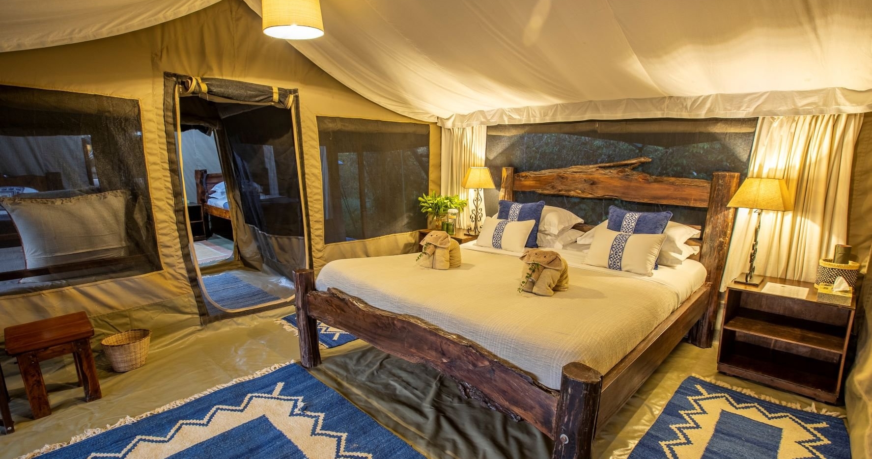 Den autentiske innredningen gjenspeiler safarieventyrene fra 1920-tallet og suppleres med moderne komfort, inkludert et evighetsbasseng med utsikt over elven. Med bare 16 telt, inkludert ett større familietelt, tilbyr campen en eksklusiv og privat opplevelse og ønsker gjester i alle aldre velkommen.