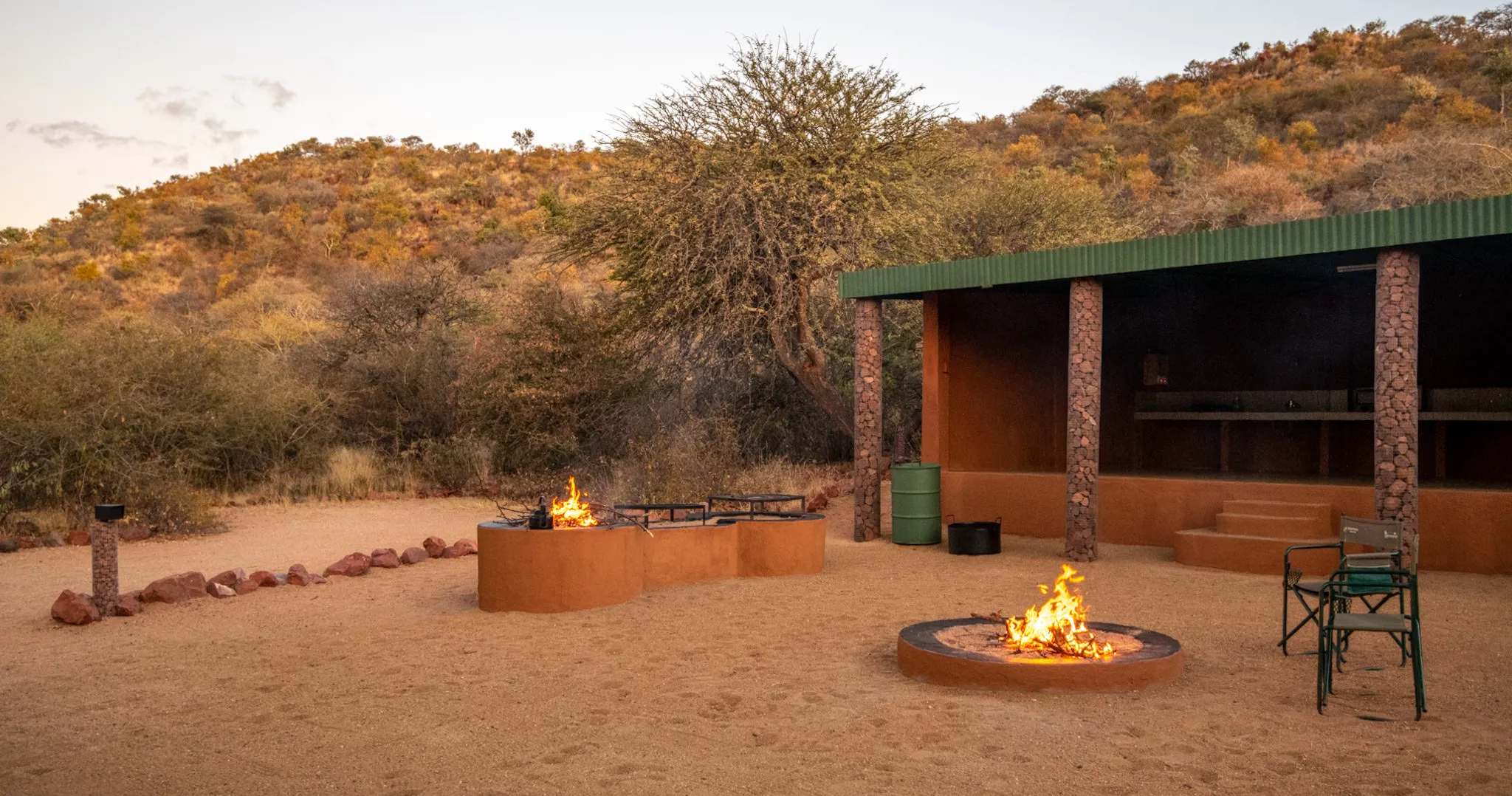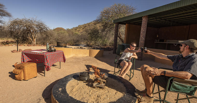 Campen ligger i ett område som bevarer Hartmanns fjellsebra, og de brente fjellene lokker til seg et rikt fugleliv. Uansett om du velger å campe eller bo i en av "hyttene", er dette et eventyrlig sted som byr på gode muligheter til å utforske de vakre omgivelsene.