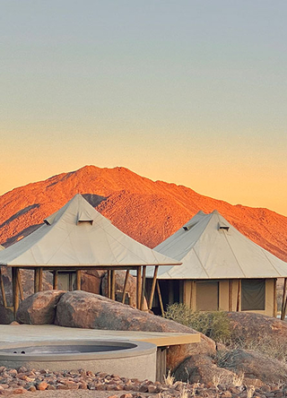 Campen ligger i ett område som bevarer Hartmanns fjellsebra, og de brente fjellene lokker til seg et rikt fugleliv. Uansett om du velger å campe eller bo i en av "hyttene", er dette et eventyrlig sted som byr på gode muligheter til å utforske de vakre omgivelsene.