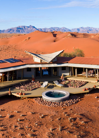 Namib Desert Lodge byr på en eksepsjonell opplevelse midt i den fascinerende Namib-ørkenen. Lodgen ligger ved foten av de mektige sanddynene. Denne lodgen er for deg som vil oppleve og nyte roen fra hverdagen.
