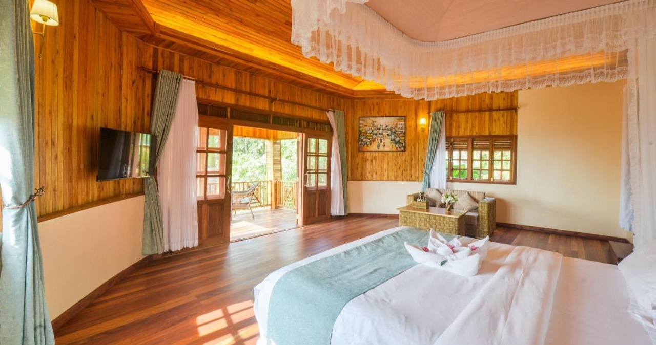 Turen opp til rommene er en opplevelse i seg selv, med godt vedlikeholdte gangstier og ville trær. Det rike landskapet og den frodige naturen sammen med fuglekvitter er en opplevelse for livet. Alle hyttene er plassert og vakkert utformet i landskapet og har utsikt over Lake Kikorongo, Lake George, og det enorme landskapet i Queen Elizabeth National Park. Hver hytte gir mulighet for privatliv og for hver gjest å slappe av i sitt eget stykke paradis.