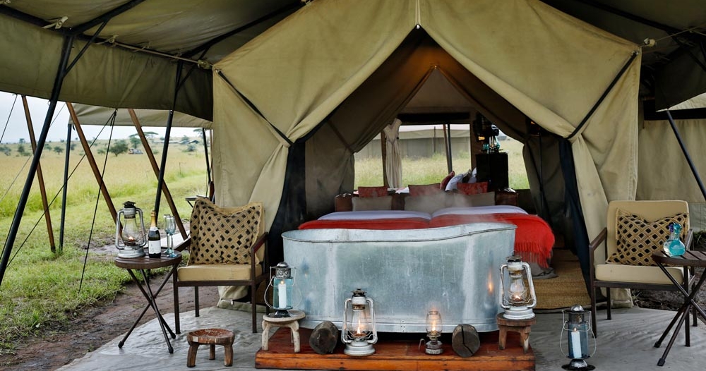 De store, romslige og elegante teltene er bygget på treplattformer. I tillegg til komfortable senger og bad, er det også utendørs dusj. Alle teltene har en stor og romslig veranda, hvor du kan se utover Serengetis uendelige sletter.