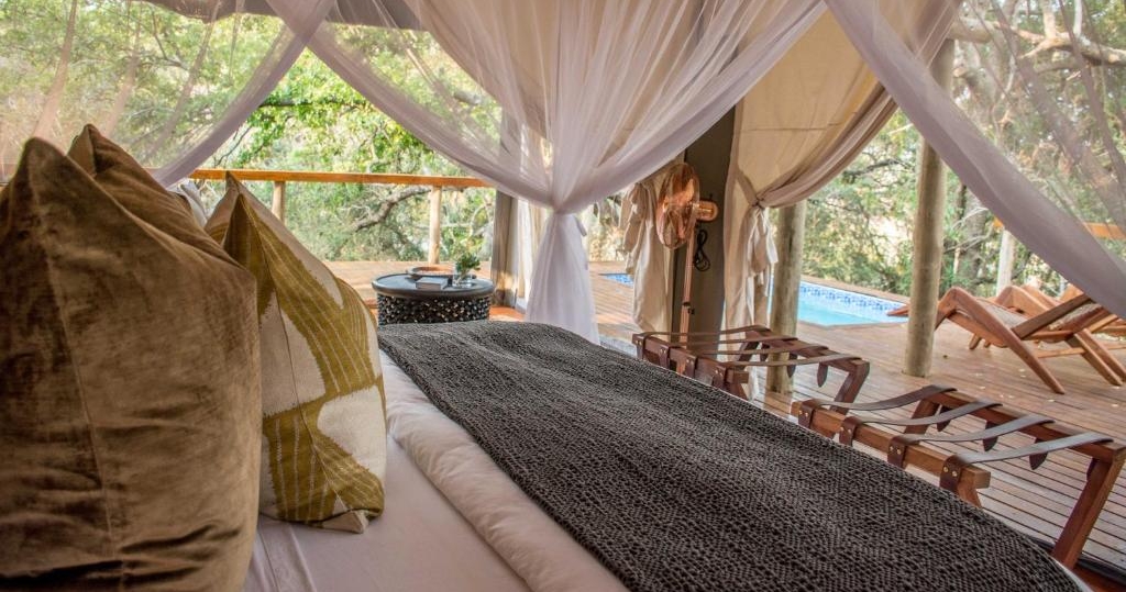 Hvert telt har en egen lounge, både innendørs og utendørs dusj, badekar, privat terrasse med basseng og vidstrakt utsikt over Msunduze-elven. Teltene kan åpnes på tre sider, noe som gir nær kontakt med naturen. Midt i campen finnes en loungedel, bar og boma (bålpanne).