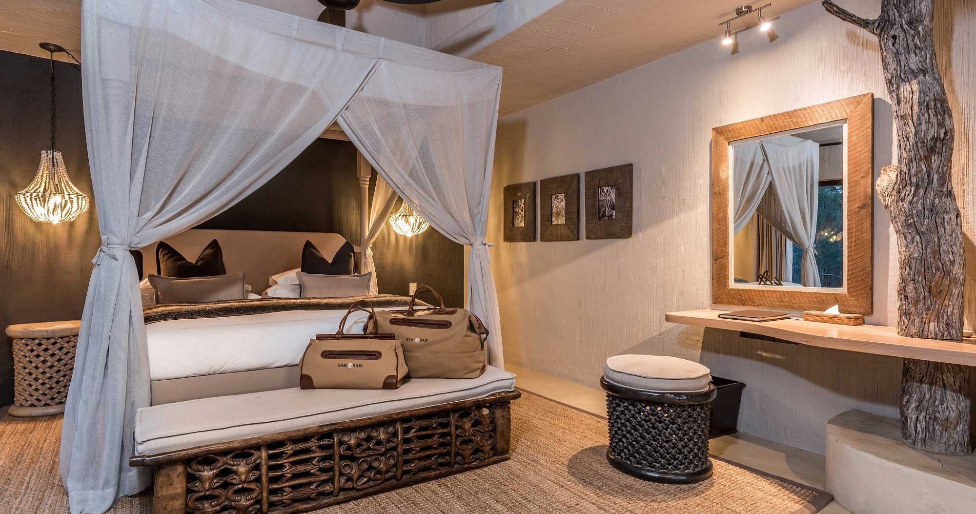 Hver suite har et moderne afrikansk design, fullt utstyrt bad, privat terrasse med oppvarmet spabad og utsikt over elveleiet. Mellom safariene er det mulighet for å slappe av ved bassenget eller gå rundt i omgivelsene. Dette er det perfekte overnattingsstedet for deg som søker en eksklusiv og adskilt safariopplevelse.