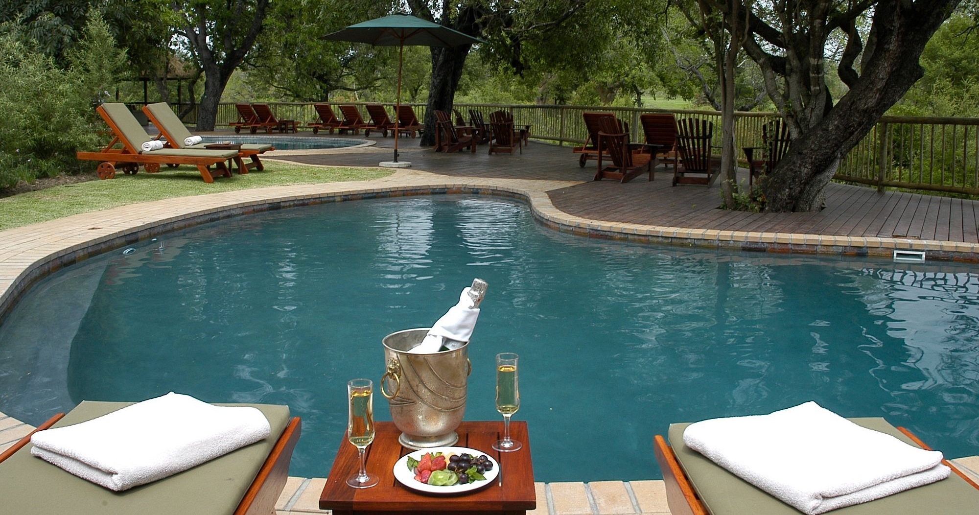 Fra suitenes terrasse kan du se ut over N’waswitsontso-elven og de store slettene. Lodgen har fasiliteter som svømmebasseng og spa-behandlinger. Et godt alternativ for familier, da barn over åtte år er velkomne.