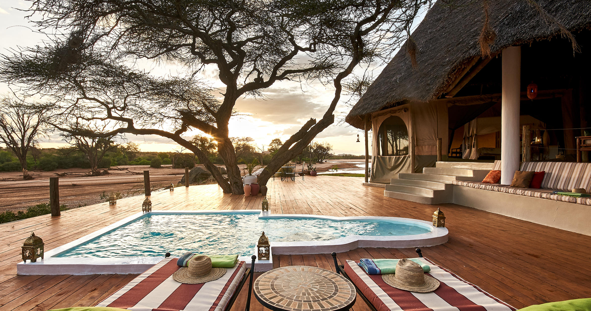 Surana Buffalo Springs ligger i hjertet av det dramatiske nord-Kenya, omgitt av lavastein og ørkenlandskap. Denne luksuriøse lodgen tilbyr 16 elegante telt, hver med eget basseng og fantastisk utsikt over Ewaso- og Isiolo-elvene, samt det hellige Ololokwe-fjellet. Rommene er romslige, med eget bad, komfortable senger og privat terrasse.