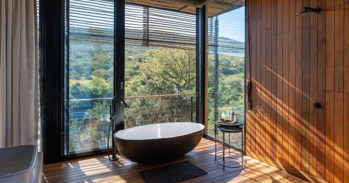 Fellesområdene inkluderer en komfortabel stue med utsikt over elven. Å spise på lodgen er en sosial affære; nyt en drink i baren sammen med rangerne før middagen, før dere tar en deilig fest i utendørsbomaen. Bayethe tilbyr spennende game-drives i åpne 4×4 safarijeeper – nattsafari og sundowners i bushen er inkludert.