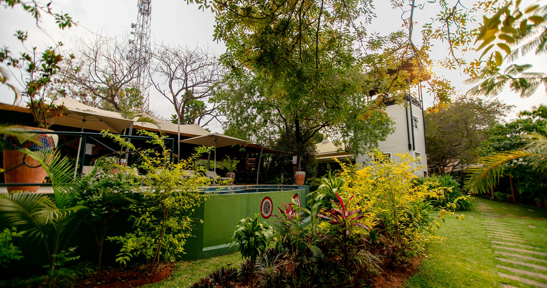 Her råder det ro og harmoni. Med to bassenger, et spa og en frodig hage er det gode muligheter for avslapning mellom dine safarieventyr.