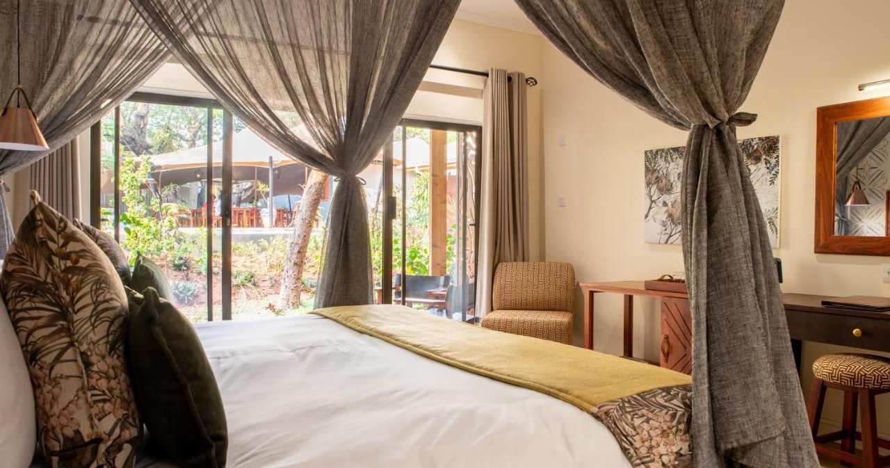 Her råder det ro og harmoni. Med to bassenger, et spa og en frodig hage er det gode muligheter for avslapning mellom dine safarieventyr.