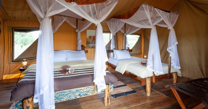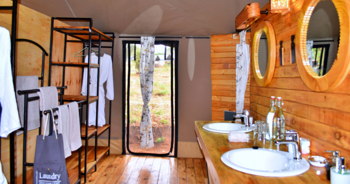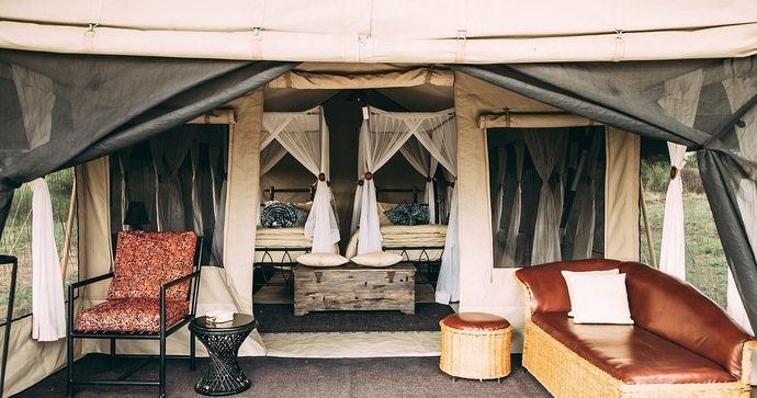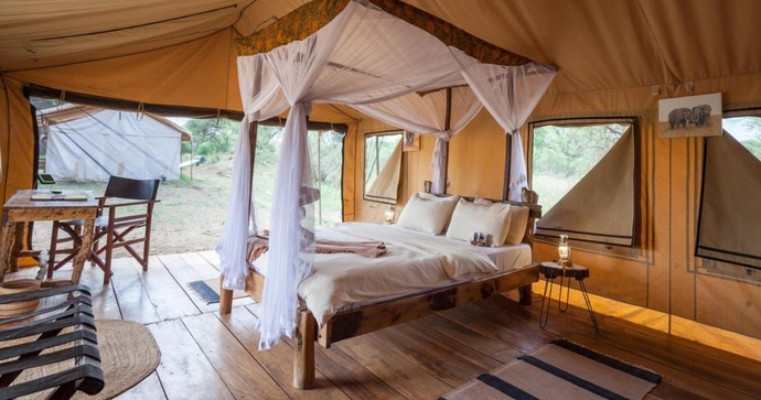Campen er åpen fra juni til midten av mars hvert år og består av seks romslige safaritelt samt et familietelt, alle med egne bad og både innendørs og utendørs dusjer. Teltene er designet for å smelte sammen med omgivelsene og det ville, med private verandaer som tilbyr spektakulære utsikter over parken.