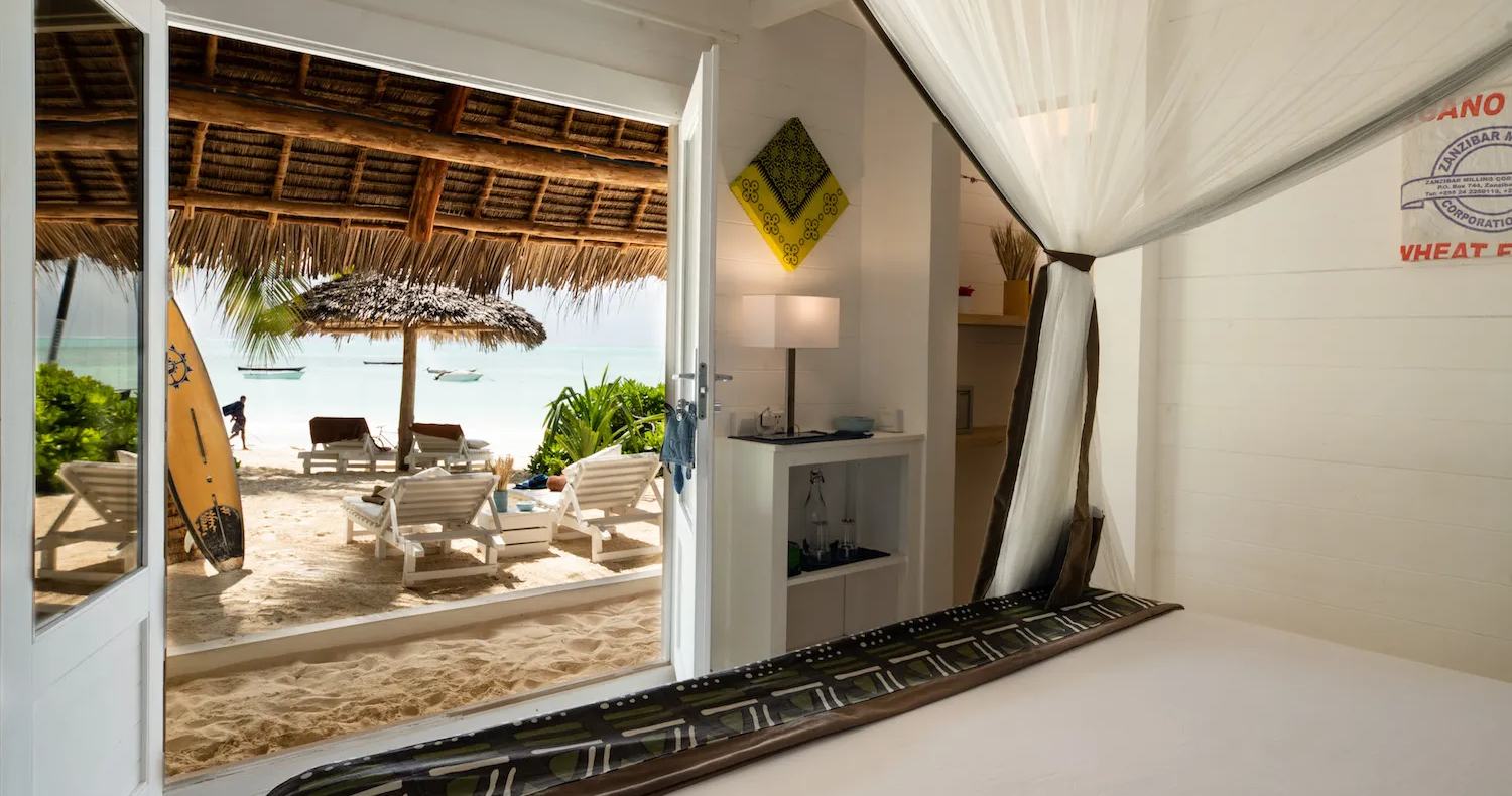 Rommene er moderne og elegante. Alle har en utendørs veranda, som ligger rett på den hvite stranden, hvor frokost, lunsj og middag kan serveres. Alle rom med flott utsikt over Det indiske hav og evighetsbassenget. Hvert rom er utstyrt med gratis wi-fi, safe, king-size-senger med store myggnett og takvifte. Fiskeværet Jambiani er en av de mest kjente landsbyene på Zanzibar og er på mange måter uberørt til tross for turisme. Her går dagliglivet side om side med turisme på en naturlig måte, noe som også skaper muligheter for ekte opplevelser.