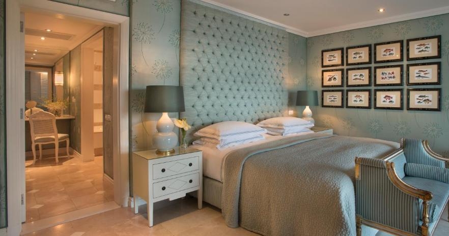 Hver suite har en ekstra lang seng (king size eller to enkeltsenger), håndlaget takvifte, aircondition og en privat balkong. Det åpne badet har en stor regndusj, frittstående badekar, doble vasker og separat toalett med bidet.