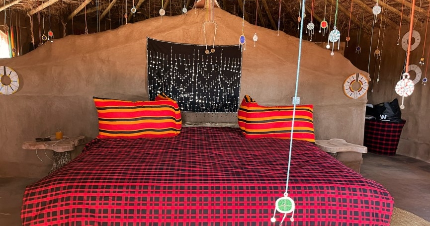 Her bor du i en av 18 sirkelformede masaibungalower, alle bygget og innredet med håndlagde detaljer og naturmaterialer. Utforsk området til fots med masaiguider, lær om lokal kultur, og start dagen med soloppgang over savannen og silhuetten av Afrikas høyeste fjell.
