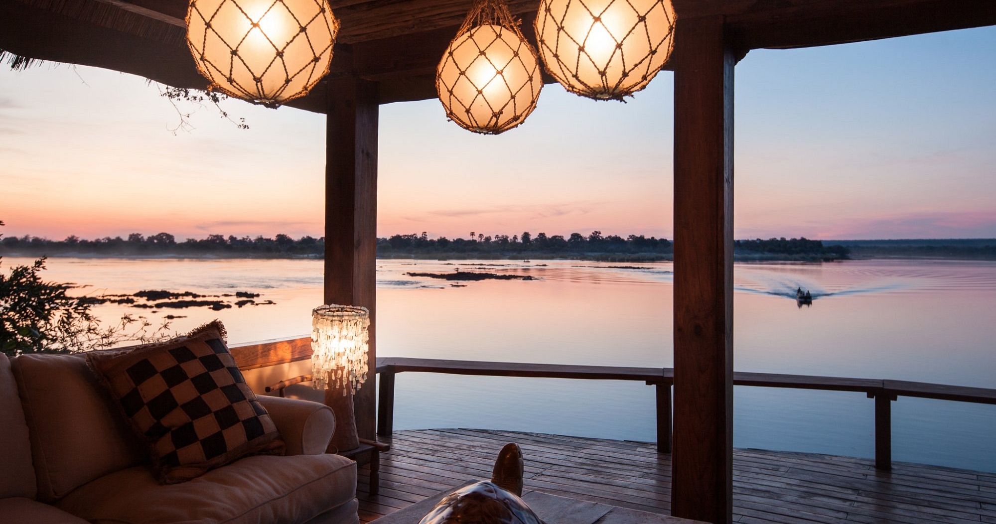 Sanctuary Sussi & Chuma er en eksklusiv overnatting beliggende ved Zambezi-elven. Dette unike overnattingsstedet består av luksuriøse trehus bygget inn i kronene på gigantiske ibenholtstrær langs elvebredden.