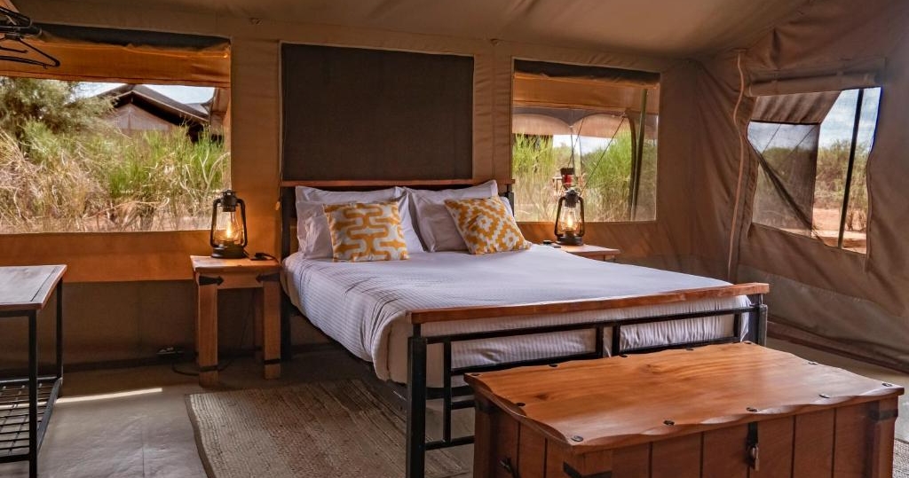 Inne i hvert telt finner du myke senger og eget bad med rykende varm dusj. Badet har også servant og spyletoalett. En kaffe- og tekoker, kjøleskap, vifte, hårføner og elektroniske safer finnes også inne i hvert telt.