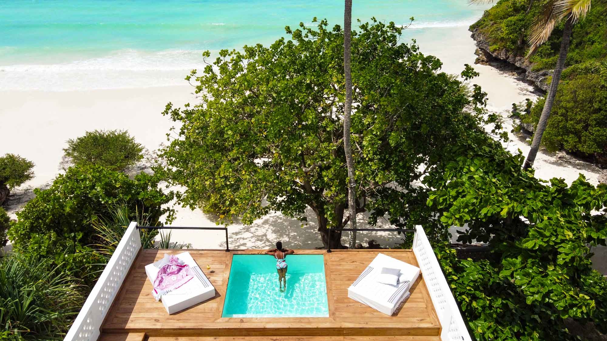 Hva med å bo i sin egen lille oase, med privat svømmebasseng bare noen skritt fra Det indiske hav?
