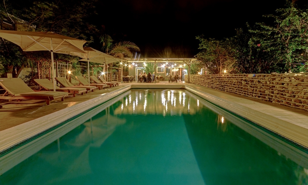 Elegante og romslige rom med moderne innredning, aircondition og fasiliteter som gratis Wi-Fi. En vakker hage, bassengområde og restaurant med fokus på ferske og lokale råvarer. Perfekt for reisende som søker komfort, avslapning og et bærekraftig valg midt i hjertet av Namibia.