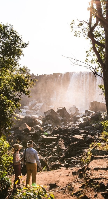 Landskapet rundt byr på bølgende åser og hvite klippeformasjoner, og markerer skillet mellom to av Afrikas største elvesystemer: Zambezielven som renner mot Indiahavet, og Kongoelven som finner veien til Atlanterhavet. Fra toppen av fossene får dere panoramautsikt over Luangwa-dalen, en del av den imponerende Albertine-riften, den vestlige grenen av Øst-Afrikas riftsystem.