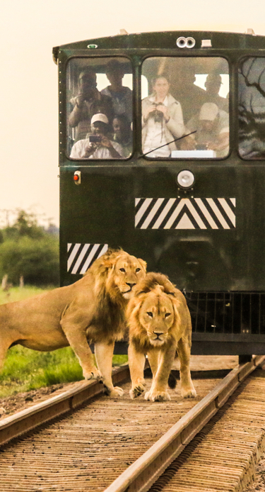 Dere blir hentet på hotellet og kjører til Zimbabwes største nasjonalpark, Hwange, hvor dere går ombord på The Elephant Express. Toget er kun for Imvelos gjester. De siste 2-3 timene på vei til safaricampen går gjennom Hwange i dette toget. Dere kjører deler av verdens lengste retteste togstrekning, totalt er den på 112 km.